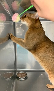 こんにちは!看護師の小俣です。お泊まりのネコちゃんをご紹介していきます!今回ご紹介するネコちゃんはアビシニアンのアクビちゃんです☆