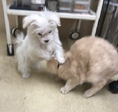 ココちゃんは何度かお泊まりにきたことがありますが、ちゃっぴぃちゃんは初めて(#^.^#)ちゃっぴぃちゃんとても元気いっぱいではじめてのねぎにも何も気にすることなく遊びに誘います(^^♪