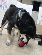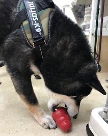 マロちゃんおやつが大好き♡コングの中に入っているおやつを取り出すのに夢中な様子・・・中々難しいなー・・・