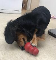 当院にあるおもちゃで遊んでいるこじろうちゃん(^_^)クンクン・・・何か入っている♪こじろうちゃん上手におやつ取り出せるかなー?