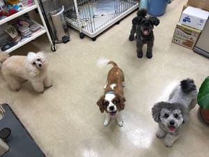 他のワンちゃんがいても何も気にしないモコちゃん☆たまたま病院に来ていたしそちゃん、そばちゃん、ナンシーちゃんと一緒にパシャッ!全員カメラ目線!(^^)!