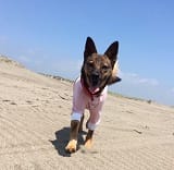 水が苦手なあくびはもちろん海の中には入らず…