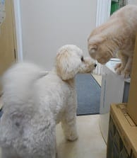 ねぎに対してはちょっとドキドキ?興味津々ですが、どう遊んだらいいか迷っている様子(^-^)