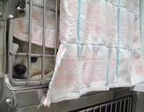 柴犬ちゃんのドライヤー中、クーちゃんのお部屋に毛が入らないようにタオルをかけておくと…