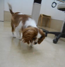 今日はやる気マンマン!!!(注;レーザーポインターの光を追いかけて 遊んでいます。)