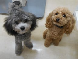 シルバーのトイ・プードルの男の子です(向かって右)。