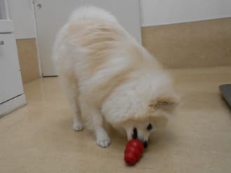 コングを持ってきてくれたのでさっそく挑戦!フードをいれてみました!